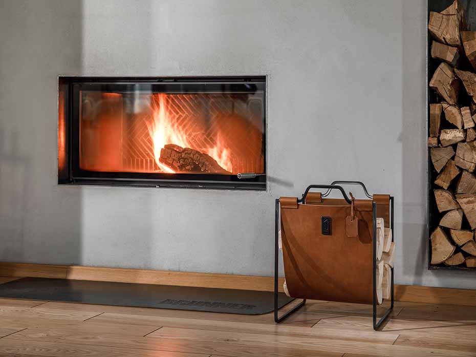 Дровница с кожаной вставкой FG-12028 чернёная полированная латунь