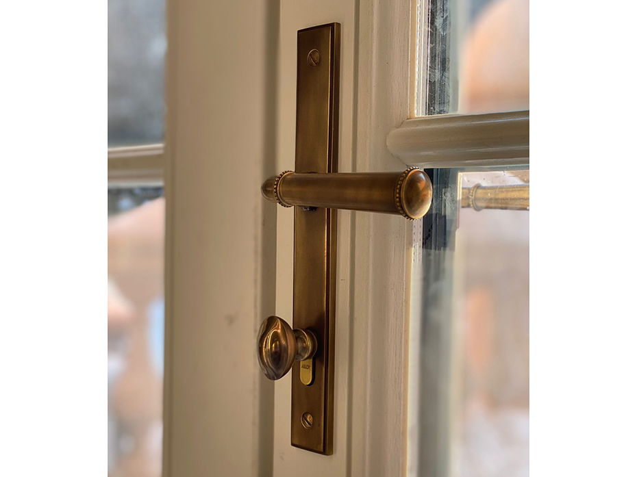 Ручка для балконной двери на узкой планке Frank Allart 7775597E01AAT античная латунь